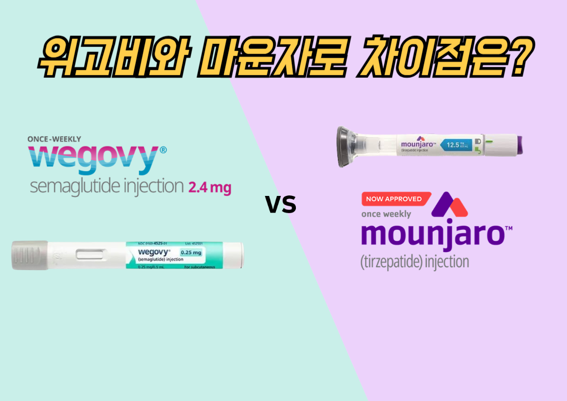 마운자로(티르제파타이드)는 GIP+GLP-1 이중작용, 위고비(세마글루타이드)는 GLP-1 단일 기전입니다.